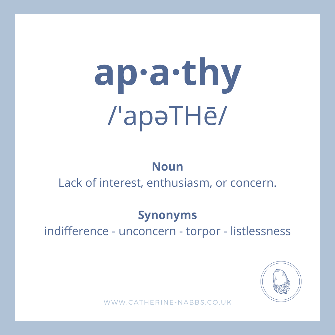 “I can’t be bothered…”, “I just can’t motivate myself…” – sound familiar? Have you recently looked at your list of things to do and struggled to get started with anything? Have you sat down in front of the television to watch one episode, and three episodes later not yet moved off the sofa? Have you started the day with good intentions, but found yourself unable to start anything? If so, you may be suffering from apathy. Apathy is a lack of compelling emotion to take action. Psychological research has shown that to take meaningful action you need to experience feelings about it. Apathy means you just don’t feel enough in that moment to move forward with purpose. I think if we have a quick look at the causes of apathy* it may become apparent why so many of us are feeling unmotivated at the moment: A major life or global event: when an even happens that we hadn’t anticipated, the distress caused can be so overwhelming it manifests as apathy. We can feel demoralised, pessimistic and maybe even cynical. A boring routine: when we feel like every day is the same, that Groundhog Day experience can wear us down and make us feel as though there is nothing to look forward to. Apathy can make us give up on creating joy or chasing dreams. Being overwhelmed: sometimes rather than the routine being boring, we can feel overwhelmed, this can lead to indifference or a lack of energy as we don’t know where to start or feel like any effort we make will only effect minimal progress or change. Anxiety: this is very often the primary cause of apathy – emotional fatigue, loss of happiness, difficulty enjoying yourself and low serotonin (the happy hormone) are all signs of anxiety that can translate into apathy. Most of us are experiencing at least one of these at the moment, which would explain why I am hearing time and time again how hard it is for people to motivate themselves. So what can we do about it? I think anyone who has experienced apathy will agree that it becomes a bit of a vicious cycle. The less you do, the more there is to do, so the more overwhelmed and anxious you feel which leads to apathy and doing less… and so it goes on (with slight variations!) The first thing is to decide what is the easiest thing you can do to pull yourself out of this? Make a list of what needs to get done, or what isn’t working for you (even the act of making a list will be a slight shift), and then commit to doing one small thing on the list. Think about ways you can vary your routine. Is it trying a new recipe, finding a new walk, starting your morning in a different way? An injection of novelty can give your energy a boost. Goal setting can be helpful as long as it’s realistic and not too overwhelming. If it feels too big, break it down into stages and manageable chunks. The point here is to be forward looking and engaged in something purposeful We’ve all be thrown out of our usual daily life over the past few months, so it may be worth looking back and remembering what brought you joy and made you feel enthusiastic before life changed – is there any way you can bring back activities in some way that made you feel alive and happy? There are also things that we know reduce anxiety that we can all monitor to make sure they are a regular part of our lives, which may also help with apathy: Keep busy – you may not be feeling energised, but keeping busy can distract your mind from anxiety. This is linked to goal setting and looking back to things that you have found meaningful in the past. This also gives us the opportunity to make new, positive memories that may help with apathy and anxiety. Spend time with friends – now that we are able to go for socially distanced meet-ups, try to make sure you see friends in person if you are able and it is safe, otherwise arrange regular phone or zoom calls. Seeing friends is a major mood-booster and when we are anxious or apathetic it can be easy to cancel plans – try to make sure you keep those arrangements even if you’re not feeling like it. Exercise – even though you may not feel like it, exercising can improve your mood, reduce apathy and give you a sense of accomplishment. Professional help – if you are suffering and things feel helpless, there really is no need to do this alone. You can read more about how to find an online counsellor on my blog . Above all, practice self-compassion, understanding and empathy. The task now is to quiet your inner critic and move past the negative messages you may have about yourself. Congratulate yourself for any small steps that you make; be gentle with yourself when things don’t go exactly as you had hoped, and celebrate your decision to move forward with purpose and in a way that feels right for you right now. •please note that apathy can be a sign of some medical conditions, so these should be ruled out first if you are at all concerned.